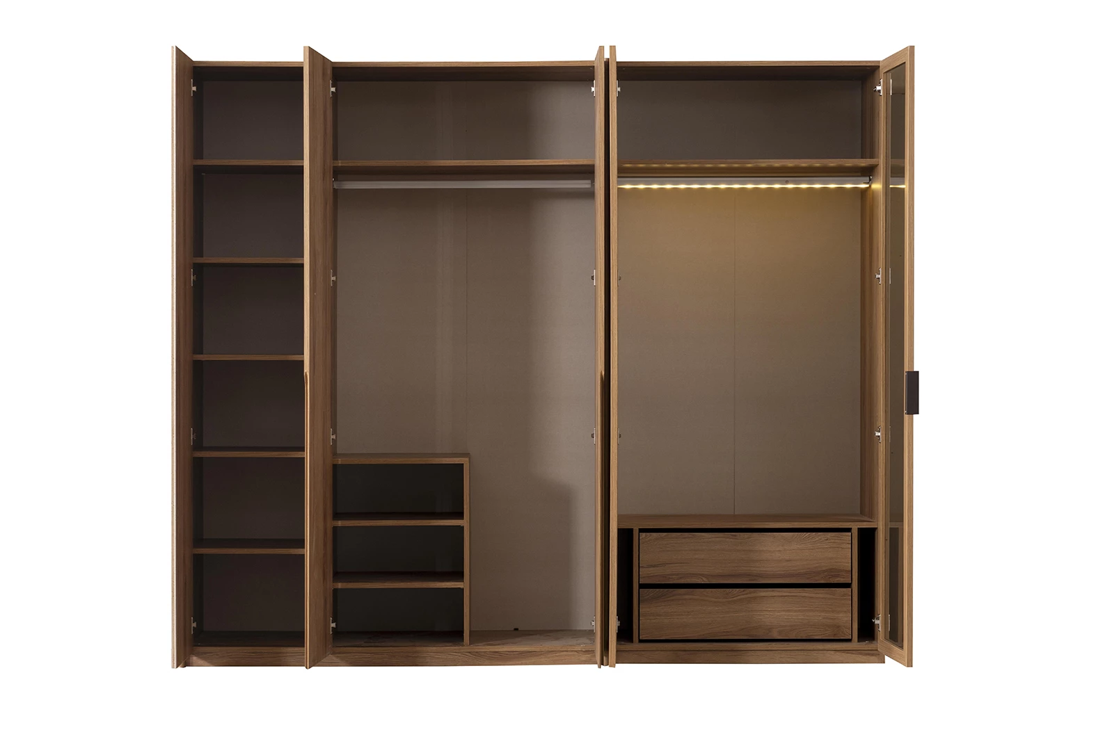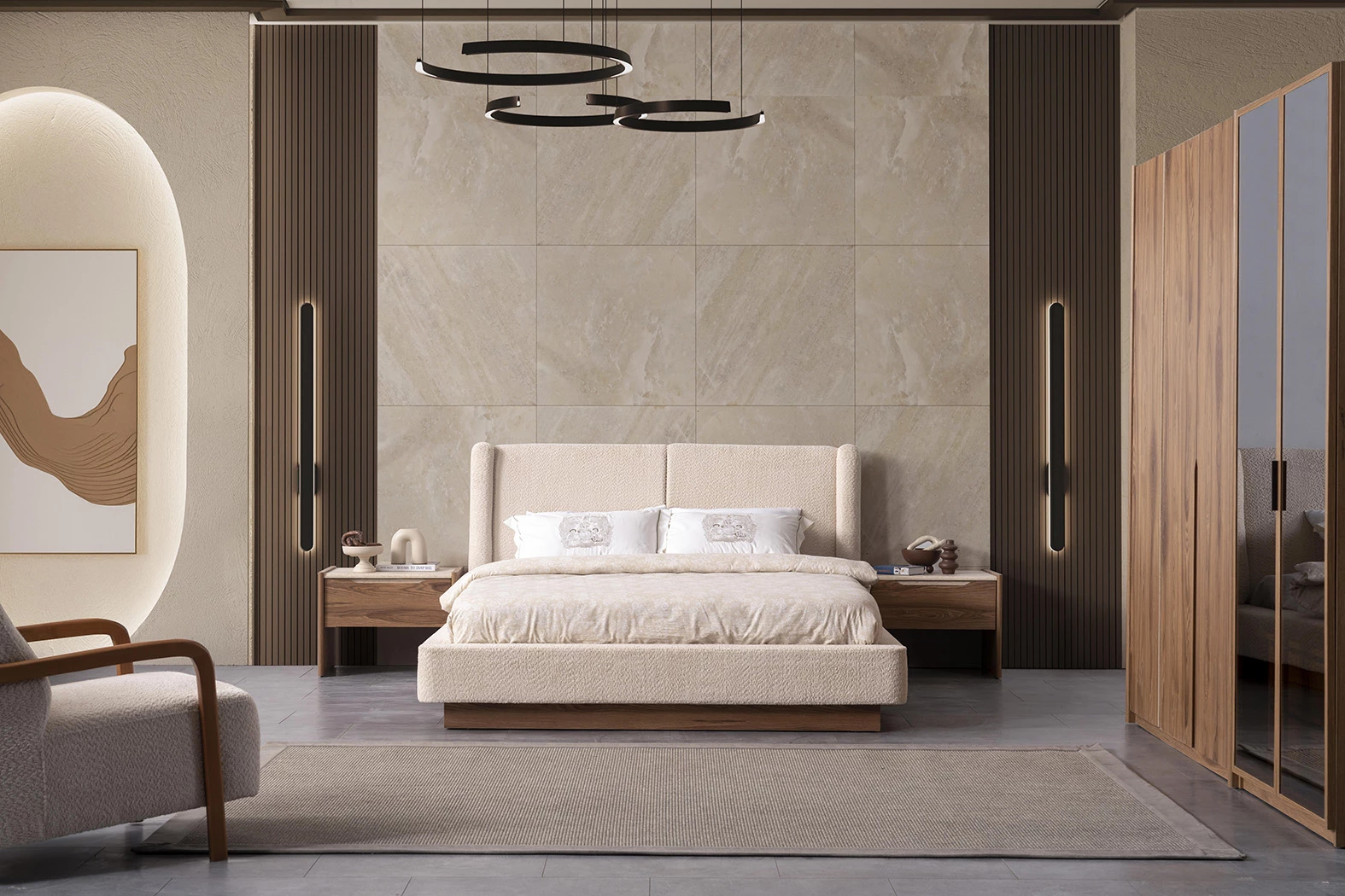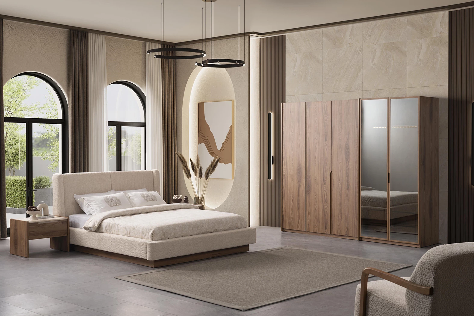 Takım İçeriği: 6 Kapaklı Gardrop-Bazalı Karyola(160x200)-Şifonyer Ve Ayna-Komodin(2 Adet) şeklindedir.